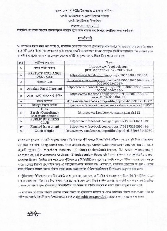ফেসবুক কিংবা অন্য কোন অসমর্থিত সূত্র থেকে সংগৃহীত তথ্যের ভিত্তিতে বিনিয়োগ করা থেকে বিরত থাকুন।